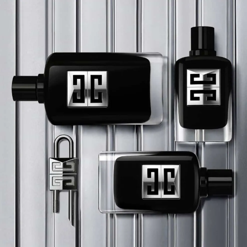 Het ontwerp van het Eau de Parfum is geïnspireerd op couture en herneemt de iconische flacon van Gentleman Givenchy met pure elegantie. Als een wapen versterkt een glinsterend zilveren metalen 4G-monogram de zwarte lak. De flacon is gemaakt van 15% gerecycled glas.