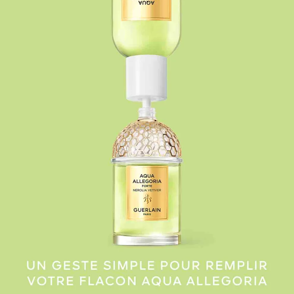 Aqua Allegoria Forte is een echt symbool van Guerlains inzet voor de planeet en bestaat voor meer dan 90% uit natuurlijke ingrediënten*. De Franse bietenalcohol in de formules is afkomstig van een sector die zich inzet voor verantwoorde landbouw.