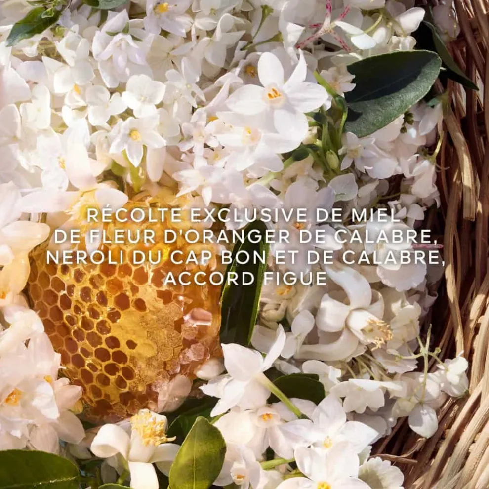 “Ik werd geïnspireerd door de ontmoeting tussen de bij en de sinaasappelbloesem, waaruit een kostbare bloemen- en citrusnectar komt, als nerolihoning. – Delphine Jelk, Guerlain parfumeur
