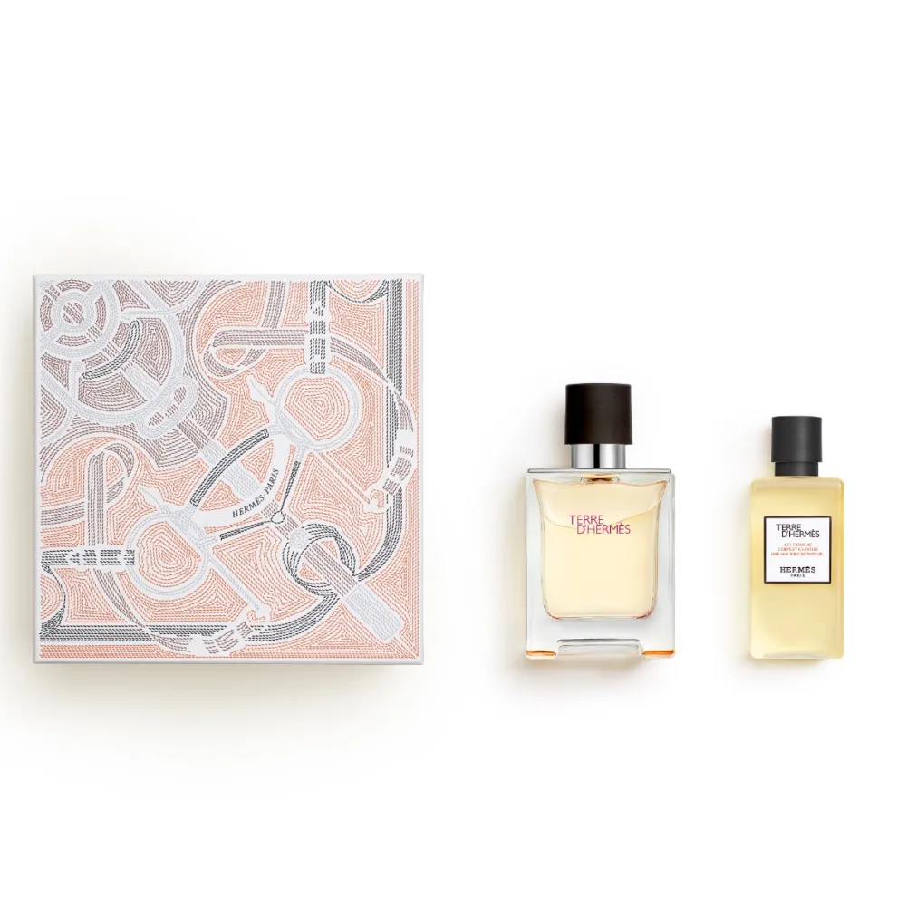 Voor Vaderdag zijn de sets van Hermès versierd met het “Éperon d’or sellier” ontwerp van Henri d’Origny. Een delicaat labyrint van gekleurde draden, als geborduurd in zadelsteek, onthult bitjes, gespen en sporen op het oranje doosje. De set bevat een Terre d’Hermès Eau de Toilette van 50 ml en een douchegel voor lichaam en haar van 40 ml. Een minerale en houtachtige geur, Terre d’Hermès combineert de kracht van cederhout en de uitstraling van grapefruit met een levendige noot van vuursteen. Terre d’Hermès vertelt over de relatie van de mens met de aarde, zijn nederige en harmonieuze dialoog met de natuur en de elementen. Terre d’Hermès is de geur die de mens verbindt met zijn oorsprong, met de bronnen van zijn creatieve kracht.
