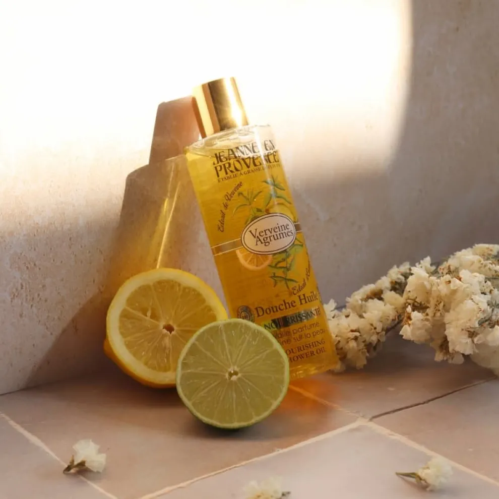 De Verbena Citrus Oil Shower Gel van Jeanne en Provence, gemaakt van biologische olijfolie en glycerine, reinigt en voedt uw huid op milde wijze. Het bevat een natuurlijk extract van verbena, bloedsinaasappel en citroen en laat een geparfumeerde en satijnachtige sluier achter op de huid.