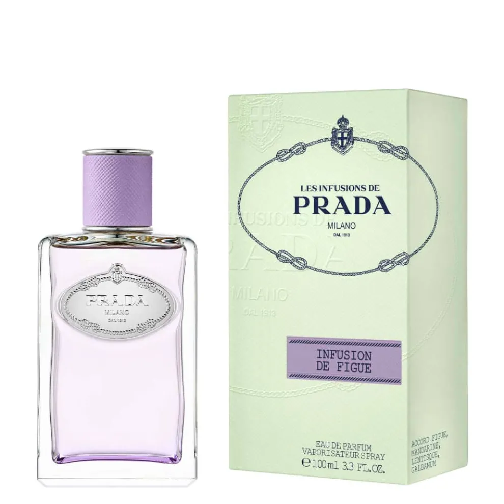 Infusion de Figue is verpakt in de iconische fles Infusions de Prada. De frisse en subtiele paarse dop doet denken aan de fluweelzachte huid van de vijg.