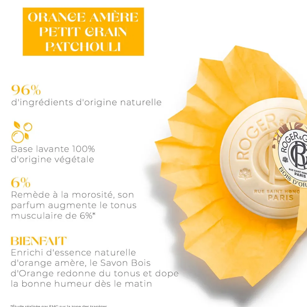 Natuurlijk energiegevend Bois d’Orange zeep, verrijkt met natuurlijke bittere sinaasappelessence, geeft je energie en humeur ’s ochtends een boost. De geur verhoogt de spierspanning met 6%* *Studie uitgevoerd door EMG op de trapezius. |