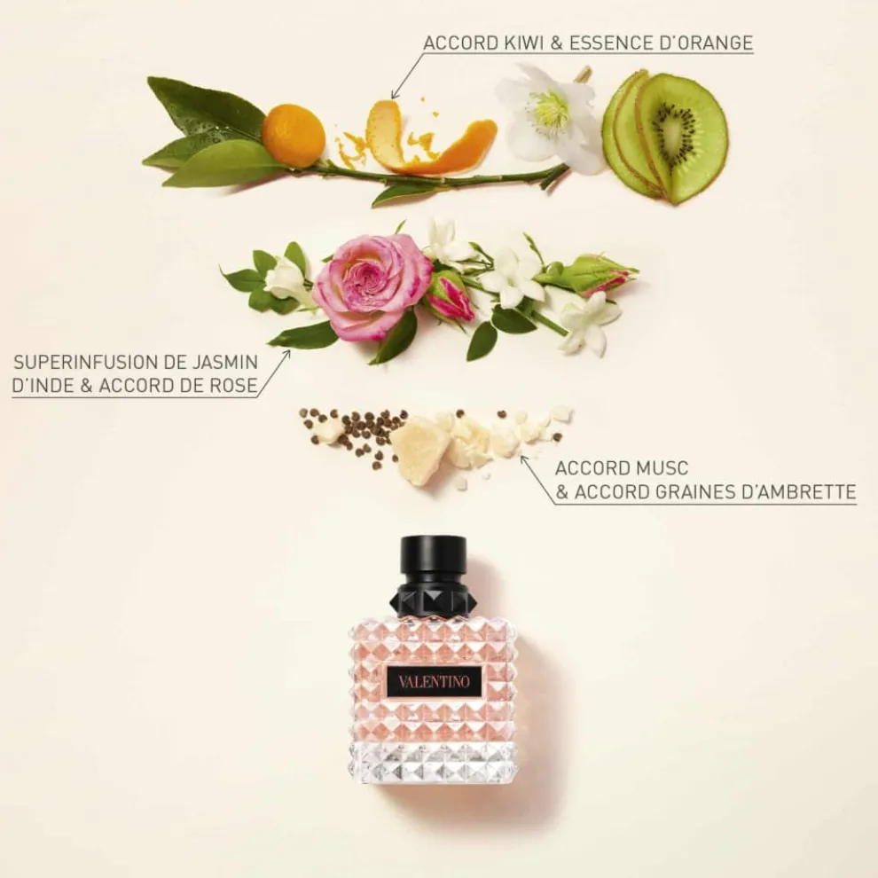 Met de hand geplukt voor zonsopgang in India voor een optimale kwaliteit, brengt de super-infusie van jasmijnbloemen een moderne touch: een fruitige en plantaardige interpretatie van een natuurlijke bloem. Een haute couture-akkoord dat de bloemige vrouwelijkheid van Born in Roma weerspiegelt.