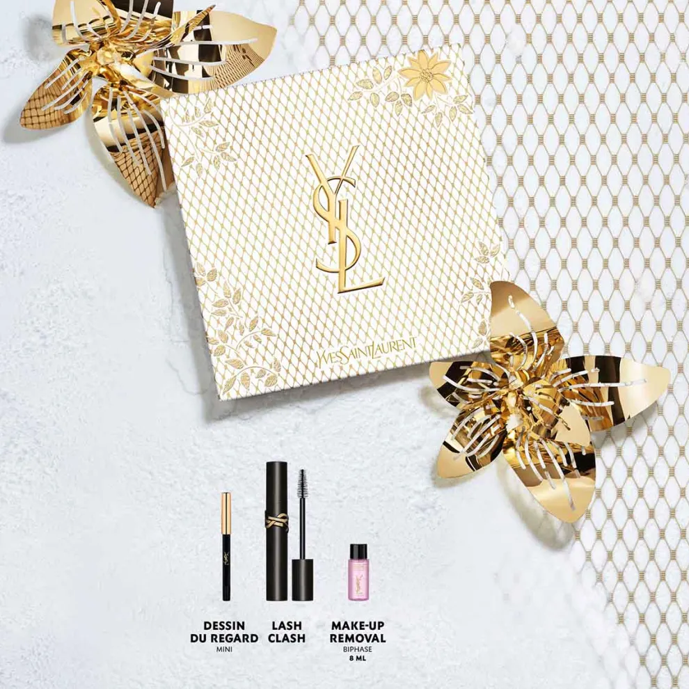 Versier jezelf met bloemen. Beleef de feestdagen in goud met Yves Saint Laurent Beauté: ontdek of herontdek onze schoonheidsbenodigdheden in een couture-geïnspireerde doos, versierd met een weelderig gouden visnet versierd met edelweiss, om jezelf of anderen een plezier te doen.