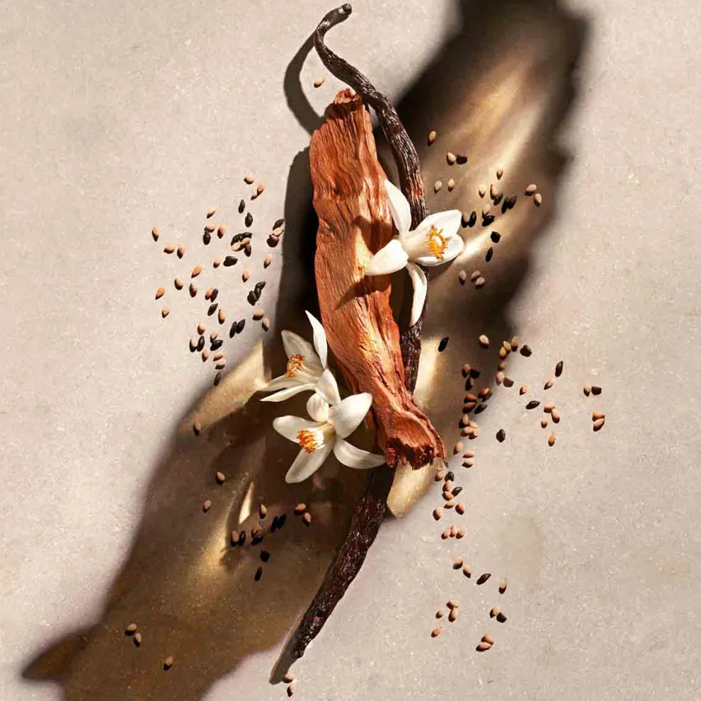 Noten van zwarte en witte sesam omhullen krachtig je huid. In de hartnoten straalt een akkoord van oranjebloesem stralende vrouwelijkheid uit. In de basis mengen sensuele noten van geroosterde vanille zich met een romig akkoord van sandelhout voor een onweerstaanbaar spoor.
