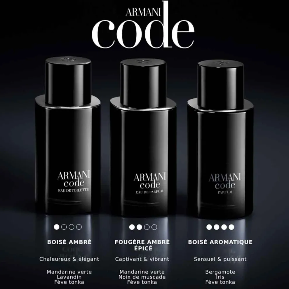 Giorgio Armani presenteert ARMANI CODE EAU DE PARFUM: een fascinerende, levendige geur ingekapseld in een navulbare flacon. ARMANI CODE EAU DE PARFUM opent met de frisse, levendige geur van groene mandarijn, geoogst in Italië, die de geur zijn pittige noten geeft. Dit wordt gevolgd door de essentie van nootmuskaat, met zijn kruidige, houtachtige tonen. Het is afkomstig van de vrucht van de nootmuskaatboom en wordt verkregen door een zorgvuldig proces van drogen en stoomdestillatie. Tot slot geeft tonkaboon absolue de geur al zijn sensualiteit. De flacon van Armani Code eau de parfum drukt een moderne visie op luxe uit. Intens zwart, vierkant en afgerond, met een slanke glazen voet. Onder de dop, met het Giorgio Armani-monogram, vangt een zilveren plaat het licht voor een geraffineerd contrast. In lijn met Giorgio Armani’s voortdurende inzet voor duurzame ontwikkeling, is de eco-ontworpen fles hervulbaar in alle formaten dankzij de 150ml navulling.