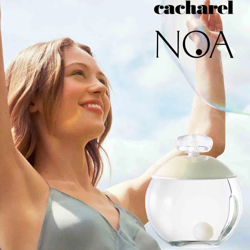 Noa, de nieuwe Cacharel-heldin, spreekt tot ons over vrouwelijkheid, wijsheid, waarheid en hoop. Ze heeft een welwillende kijk op de wereld, gesymboliseerd door haar ronde, tedere en lichtgevende geur. Een transparante glazen fles, een bol als een planeet… in het hart een iriserende parel. Het idee van een eeuwige cyclus van het leven.