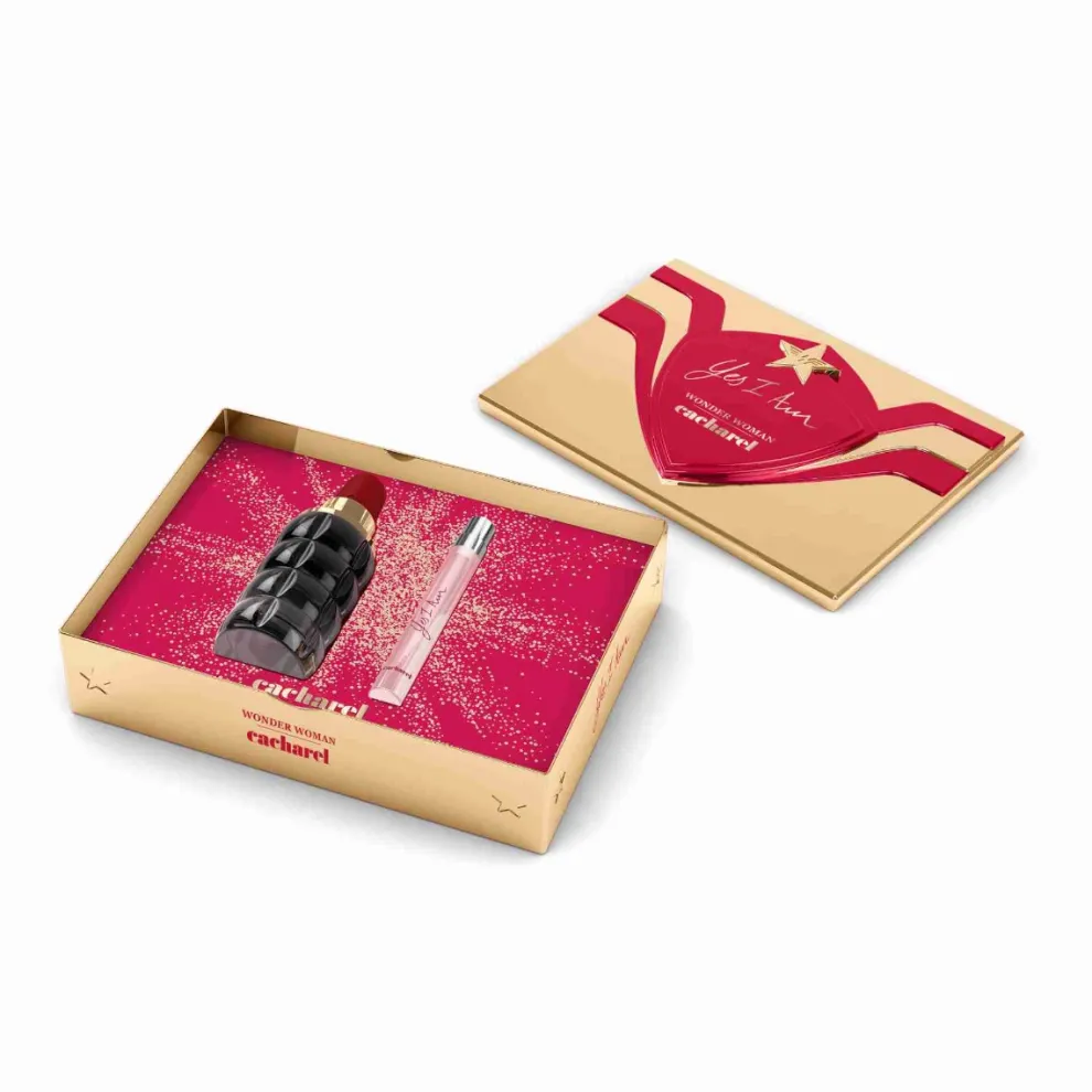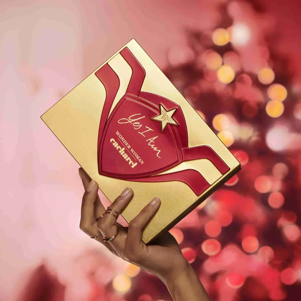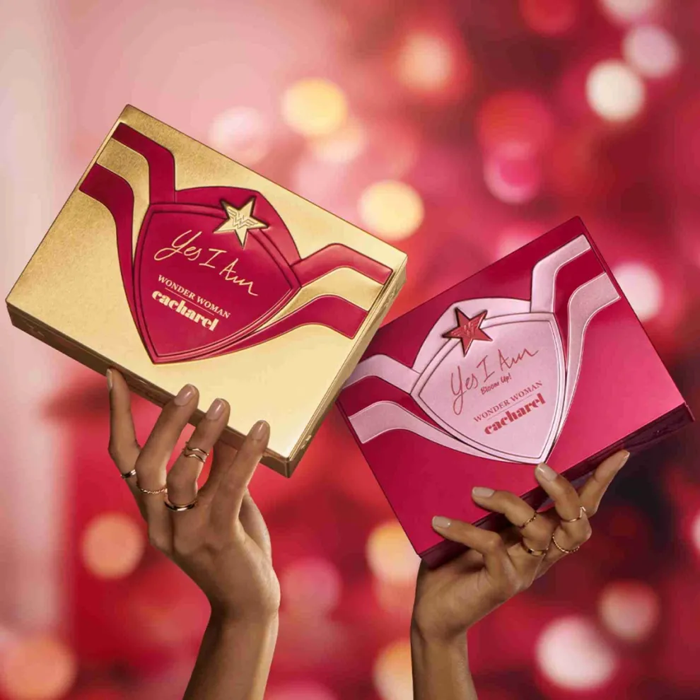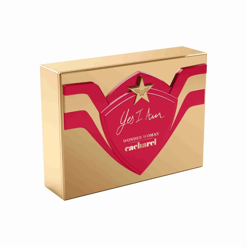 Ontdek voor Moederdag de Wonder Woman versie van onze hoogwaardige Yes I Am metalen box. Deze super-krachtige, herbruikbare doos bevat : – L’Eau de Parfum Yes I Am 50ml, een bloemige geur met geurnoten van framboos, mandarijn, witte bloemen en amber en een kruidig Cremoso akkoord. – Yes I Am 10ml Eau de Parfum Yes I Am Eau de Parfum is een ware verklaring van vrouwelijkheid, opgedragen aan vrouwen die hun eigen verhaal schrijven. Yes I Am is net zo krachtig als de vrouwen die het dragen en combineert gedurfde kruidige en romige noten. Yes I Am is geïnspireerd op het ontwerp van een lippenstift, het essentiële voorwerp voor de hedendaagse vrouw, om een gedurfde flacon te creëren, een symbool van emancipatie. De felrode cabochon imiteert een lippenstiftdruif, gegraveerd met de C van Cacharel. Op de lichtgouden kraag staat de naam als een manifest: YES I AM! De gewatteerde textuur van de fles van gerookt glas contrasteert met de rode en gouden schittering van de dop. Het perfecte cadeau voor Moederdag.