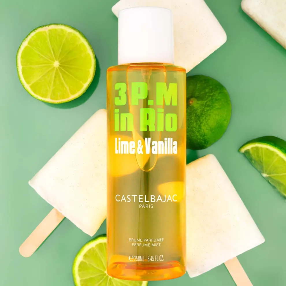 Om 15.00 uur op de bruisende stranden van Rio is de lucht vol energie en zonneschijn. De sprankelende schil van limoen combineert met de zoetheid van vanille voor een geur die zowel fris als troostend is. Deze explosieve fusie roept de feestelijke sfeer en levendige warmte van Brazilië op, een echte tropische cocktail voor de geest en de zintuigen. Een explosie van sprankelende limoenschil opent de geur en prikkelt onmiddellijk de zintuigen met zijn pittige, verkwikkende frisheid, als een zuchtje tropische lucht op de levendige stranden van Rio. Zachte, zoete vanille omhult deze stralende energie met een troostende streling en brengt warmte en sensualiteit. Deze uitgebalanceerde en fascinerende fusie tussen de frisheid van citroen en de gastronomische tederheid van vanille creëert een echt tropische cocktail, perfect om de zonnige energie van Brazilië te verlengen op je huid en haar.