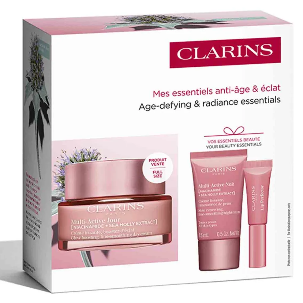 Deze doos bevat: Multi-Active Day – Alle huidtypes 50ml Multi-Active Night – Alle huidtypes 15ml Lip Perfector – 01 rose shimmer 5ml