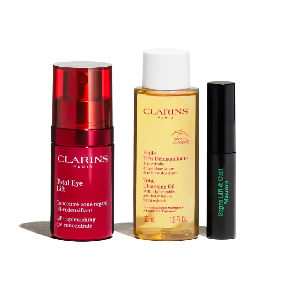 Deze box bevat drie expertformules om je ogen te verbeteren. Total Eye Lift, de deskundige liftende oogcontourbehandeling met verstevigend organisch harungana-extract en cassiawas met gladmakende eigenschappen, die de ogen in 60 seconden* lift en de huid verstevigt. Supra Lift & Curl Mascara lift, krult en definieert de wimpers perfect, terwijl Extra Cleansing Oil make-up en onzuiverheden verwijdert voor een zachte, schone huid.