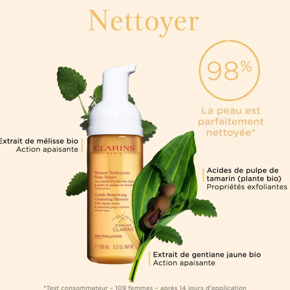 – Het Gentle Complex, dat twee kalmerende actieve ingrediënten combineert (biologische gele gentiaan & biologische melisse) die op ons Clarins landgoed worden gekweekt, helpt de huid te kalmeren, te kalmeren en te verzachten telkens als make-up wordt verwijderd.
