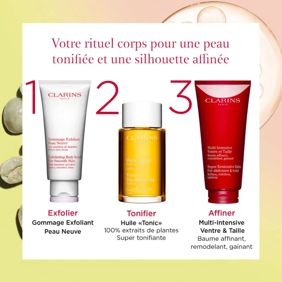 De lichaamsverzorging tegen verslapping, samengesteld uit 94% natuurlijke ingrediënten, die verslapping aanpakt en helpt de buik en taille opnieuw vorm te geven voor een harmonieuze contour. Het figuur wordt opnieuw gedefinieerd en harmonieuzer. De huid wordt gladgestreken en intens gevoed.