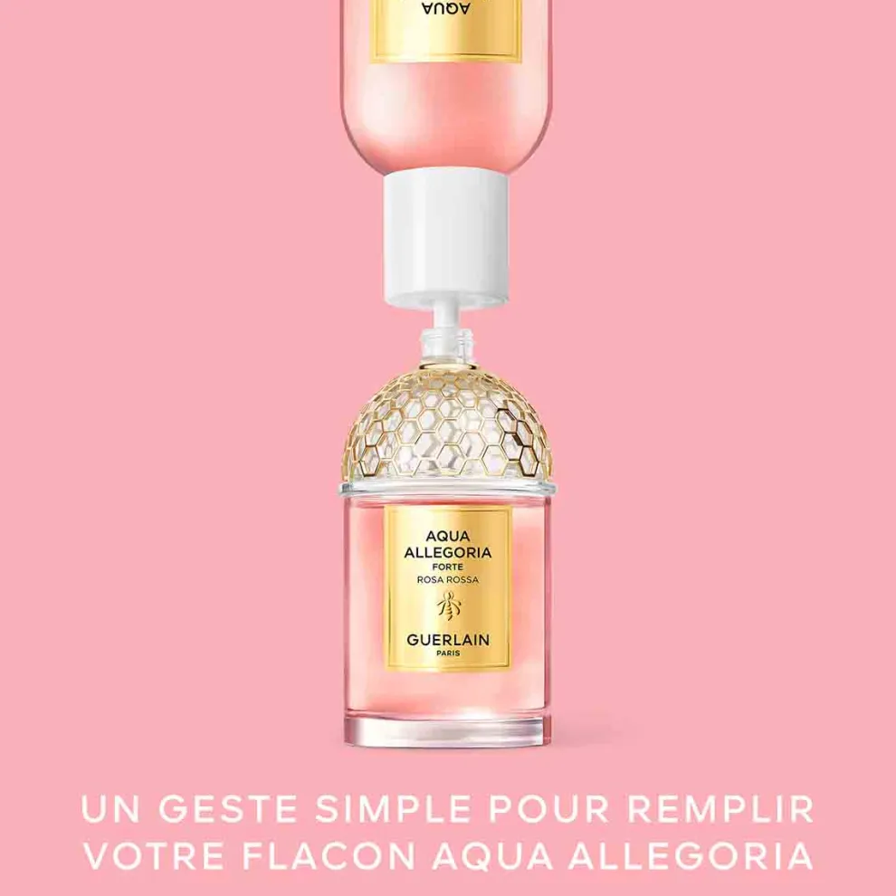 Ontdek het navulformaat van Rosa Rossa Forte en vul uw kostbare fles Aqua Allegoria in één eenvoudig gebaar.