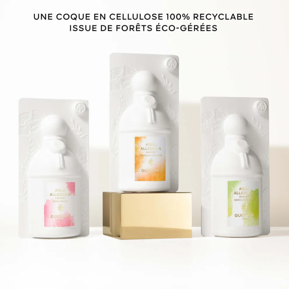 Aqua Allegoria is een echt symbool van de inzet van Guerlain voor de planeet en bestaat voor 95% uit natuurlijke ingrediënten*. De Franse bietenalcohol in de formules is afkomstig uit een sector die zich inzet voor verantwoorde landbouw.