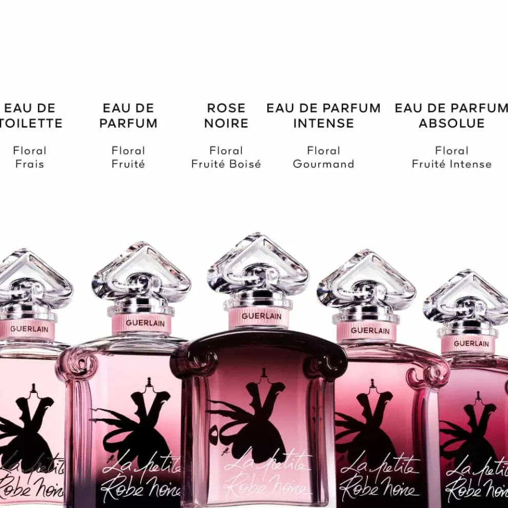 De fles met het “omgekeerde hart” werd in 1912 gecreëerd en is al meer dan honderd jaar een icoon. Voor La Petite Robe Noire Rose Noire is deze legendarische fles gehuld in een gradatie van zwart naar intens roze als eerbetoon aan een mysterieuze roos, onthuld door een iconisch “zwart” akkoord.