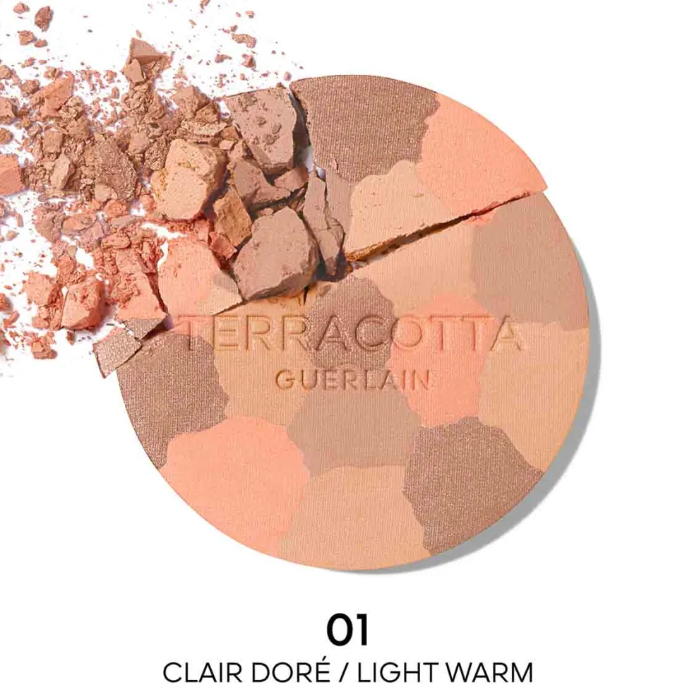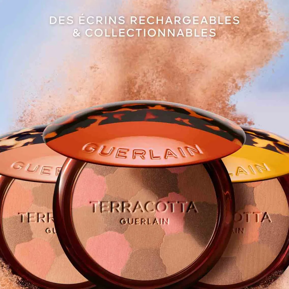 In het hart van de koffer blijft de emblematische Terracotta Light-formule ongewijzigd. Met 96% ingrediënten van natuurlijke oorsprong is dit lichte poeder een unieke combinatie van zonovergoten tinten versterkt met vitaminerijke kleuren die de gezonde gloed en natuurlijke uitstraling van elke huidtint onthullen.