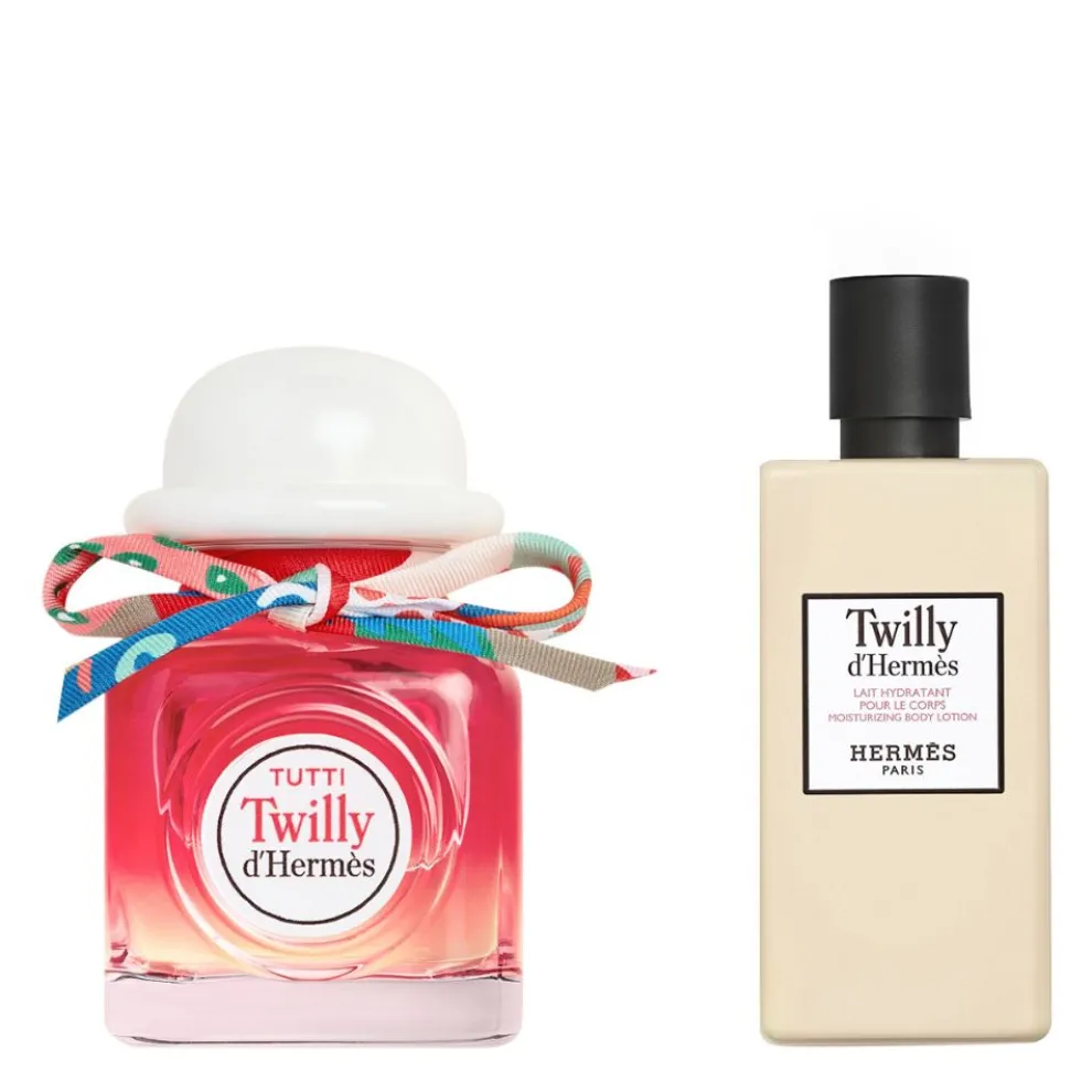 Om Moederdag te vieren zijn de sets van Hermès versierd met het “Éperon d’or sellier” ontwerp van Henri d’Origny. Een delicaat labyrint van gekleurde draden, als geborduurd in zadelsteek, onthult bitjes, gespen en sporen op het oranje doosje. Deze doos bevat : Tutti Twilly Eau de Parfum, 85 ml flacon Hydraterende bodylotion, 80 ml Geur: Tutti Twilly van Hermès is een bloemig en fruitig Eau de Parfum met een gul karakter, gevlochten met zoete gemberbloesem, zachte lychee en omhullende muskus. Land van herkomst: Frankrijk