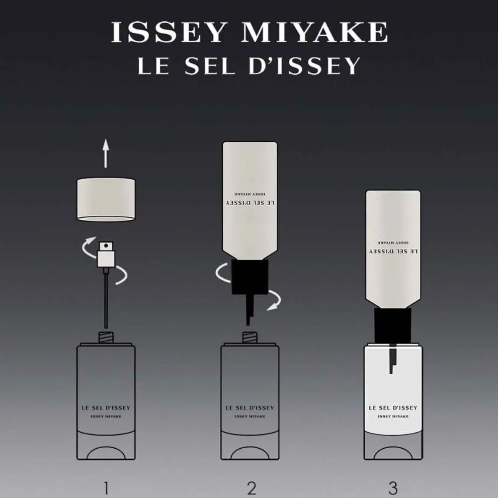 Le Sel d’Issey Eau de Toilette. De kracht van zout in een nieuwe geur voor mannen. Le Sel d’Issey Eau de Toilette is Issey Miyake’s nieuwe veganistische geur, die de kracht van zout belichaamt. Water, overvloedig en transparant, draagt het ongrijpbare en onmerkbare zout in zijn stroom. Als het water verdampt, kristalliseert het zout en laat het een unieke geur achter op je huid die je zintuigen prikkelt en je zin in het leven geeft. Laat je meevoeren door de beweging en luister naar je hartslag. Geniet van de vitaliteit. Een nieuwe frisheid in een houtachtige aquatische geur voor mannen Gemaakt met 95% natuurlijke ingrediënten en Franse alcohol, Le Sel d’Issey is een frisse, houtachtige aquatische geur. Een veganistische geur waarin de kracht van zout wordt onthuld door intense, mannelijke houtachtige noten. Met deze nieuwe eau de toilette is parfumeur Quentin Bisch erin geslaagd om zout geurloos te maken. Op een reis van zee naar land wordt deze levendige geur onthuld door twee olfactorische polen. De zoute pool belichaamt de zee door middel van een levendig zoutakkoord. Natuurlijk voorkomend zeewier mengt zich met eikenmos, een zeewier dat naar het land is gemigreerd, en creëert zo een link met de tweede olfactorische pool van de geur. Noten van sprankelende gember versterken de frisheid van het zoutakkoord en begeleiden de houtachtige pool. De houtachtige noten onthullen hun intensiteit om de geur body en textuur te geven. Natuurlijk vetiverzand mengt zich met natuurlijk cederhout, een ge-upcycled ingrediënt afkomstig van zaagsel uit de meubelindustrie. De verkwikkende wisselwerking tussen de zilte en houtachtige elementen brengt de rauwe, krachtige mannelijkheid van de geur naar voren. Een strakke, design parfumfles De tijdloze, strakke parfumfles vangt het licht en de kracht van zout. De ontwerper van de flacon, de internationaal bekende ontwerper Yokujin Yoshioka, heeft al rechtstreeks samengewerkt met de heer Miyake en onderzoekt het kristallisatieproces. De lichtgrijze tint van de geur is te zien door de transparante flacon, die gemaakt is van 20% gerecycled glas*, en doet denken aan het zout in het hart van de geur. Onderaan de flacon symboliseert een halve bol kracht en mannelijkheid. *Verpakking (fles exclusief dop) gemaakt van ten minste 20% gerecycled materiaal (glas). In harmonie met het parfum is het doosje natuurlijk grijs, wat de zuiverheid van zout oproept, terwijl het matte oppervlak de textuur van zoutkristallen weerspiegelt. Voor het eerst bevat het doosje 10% geüpcycled zeewier, evenals materialen afkomstig uit goed beheerde FSC™-gecertificeerde bossen en andere gecontroleerde bronnen. Sel d’Issey is verkrijgbaar in twee formaten 50ml en 100ml en een navulling van 150ml. Gemaakt in Frankrijk. Hoe intensiveer je je geur? Spray Le Sel d’Issey op de huid, met speciale aandacht voor de pulserende zones (nek, polsen, binnenkant van de ellebogen) om het spoor te intensiveren.