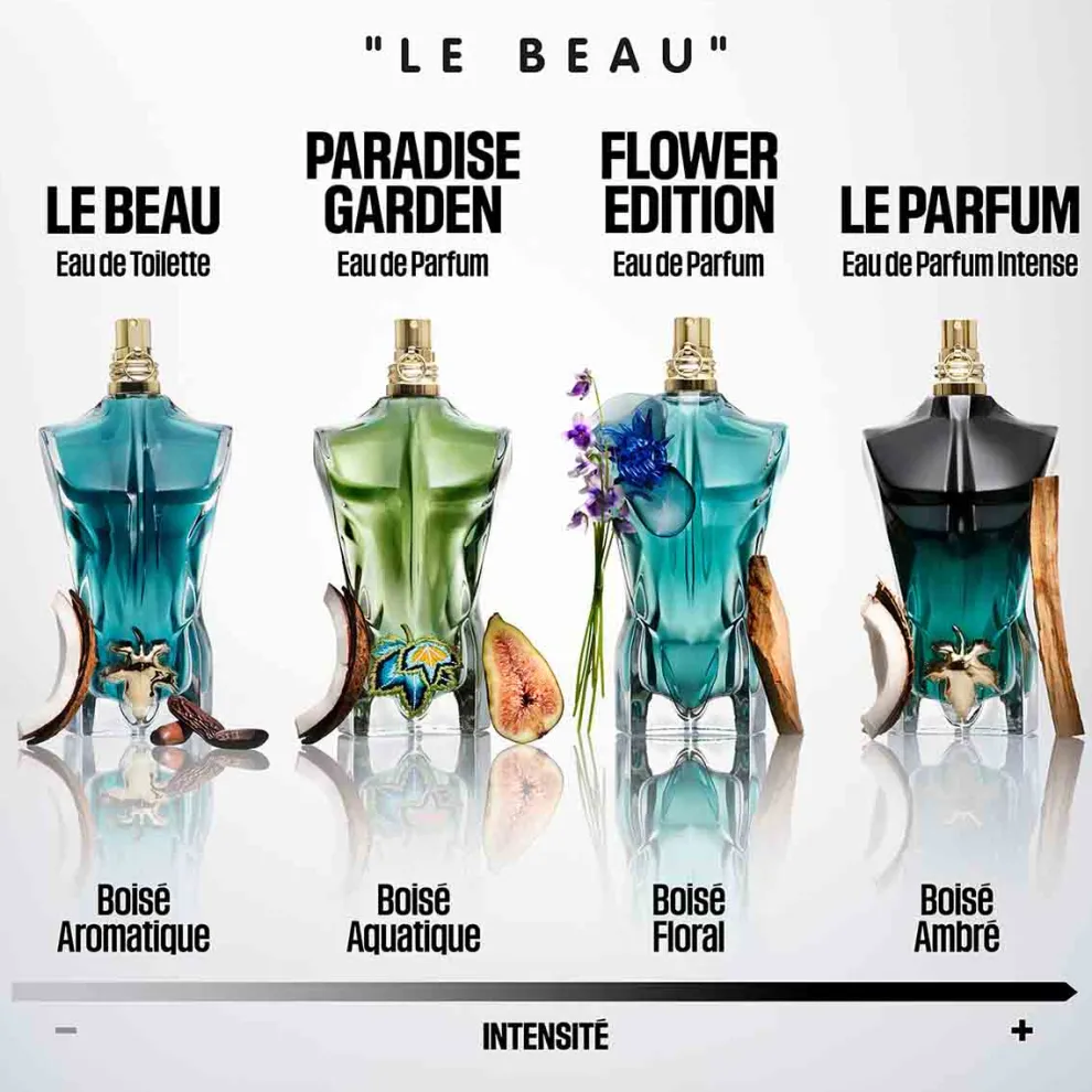 De limited edition Le Beau Flower Edition voert ons mee naar een fantastisch Eden. Dit blauwe doosje onthult een naakte azuurgroene fles. Op de schouder nodigt een fascinerende, kortstondige bloem je uit om te plukken van de verleiding van zijn onvergetelijke fruitige, bloemige houtachtige geur.