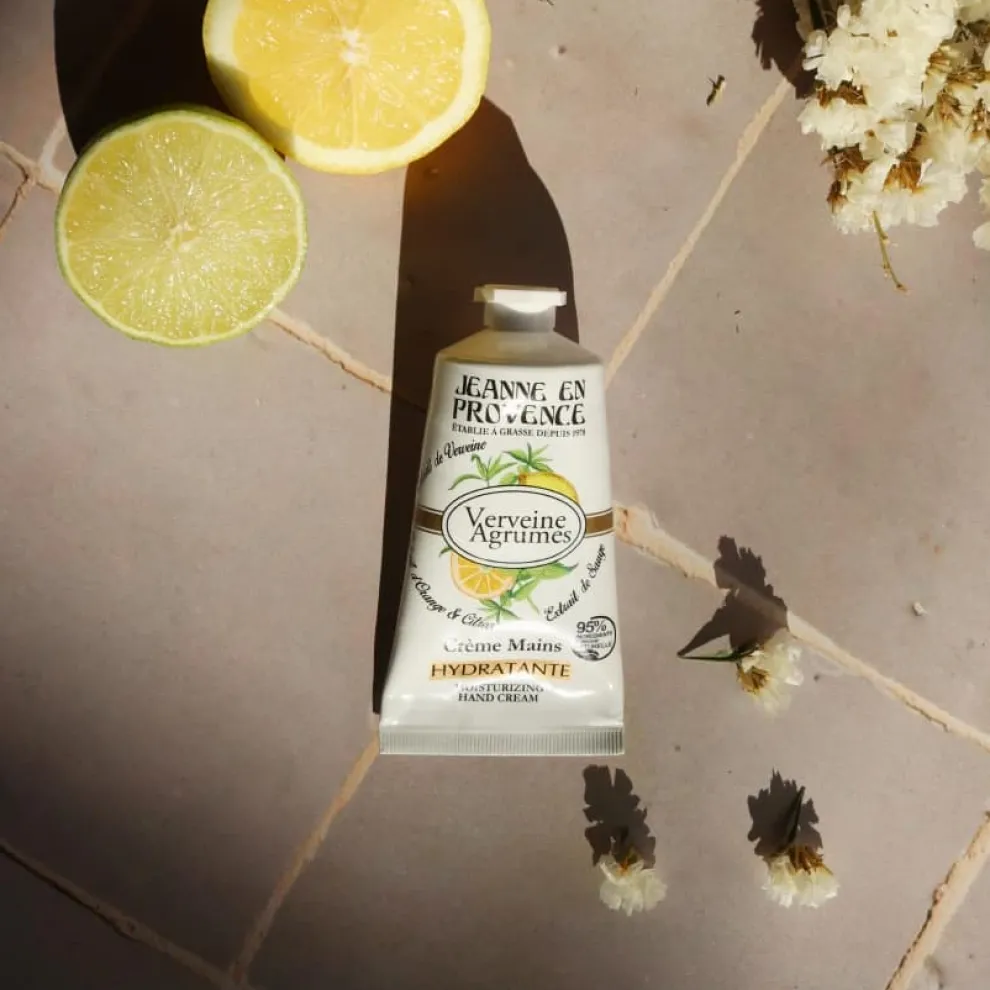 De Citrus Verbena Handcrème van Jeanne en Provence is aangenaam om aan te brengen en hydrateert dankzij de plantaardige glycerine. Met natuurlijke extracten van verbena, sinaasappel en citroen, bekend om hun verfrissende en opwekkende eigenschappen, en natuurlijk salie-extract, bekend om zijn verzachtende eigenschappen, maakt de crème uw handen zacht en mooi en hult ze in een discrete en delicate geur.