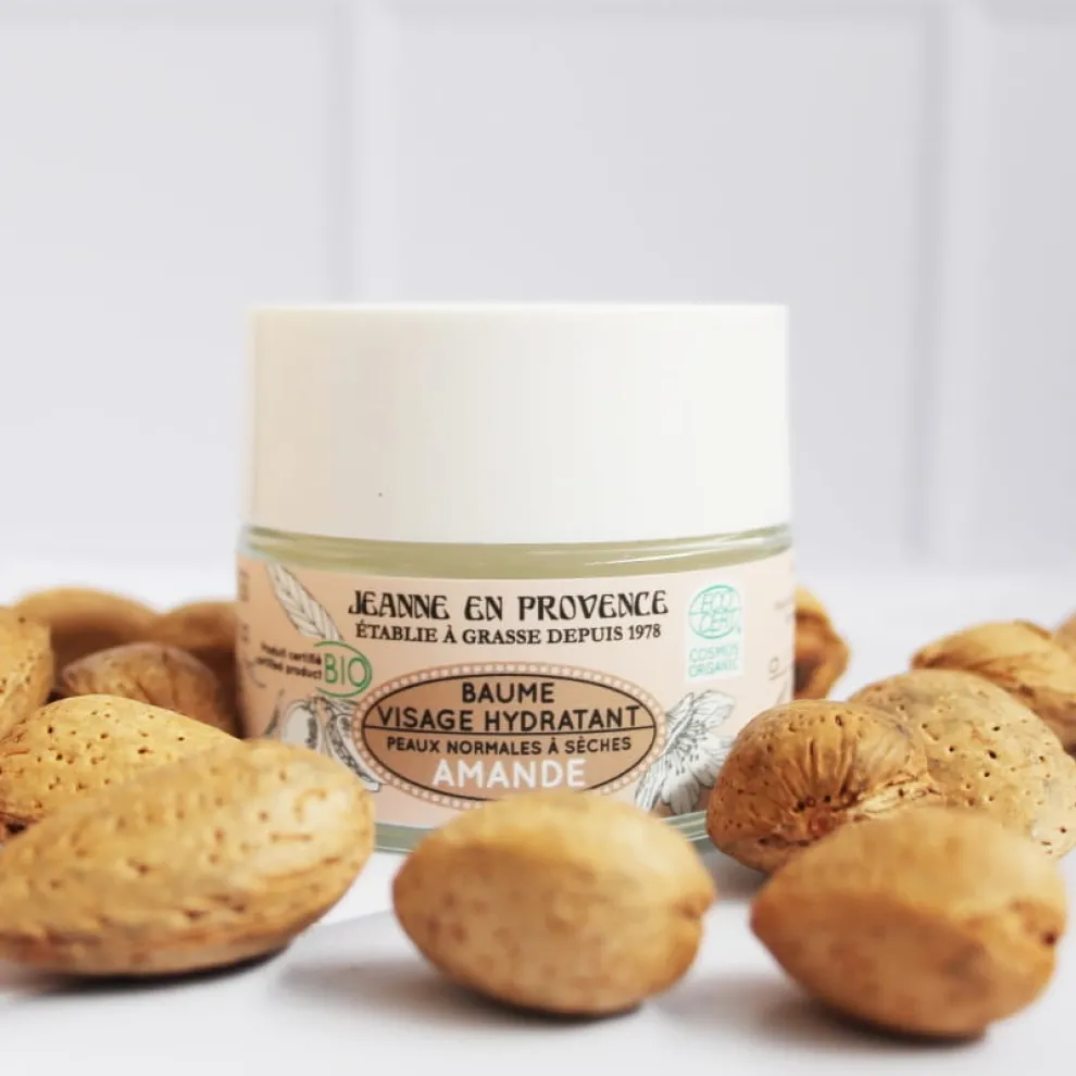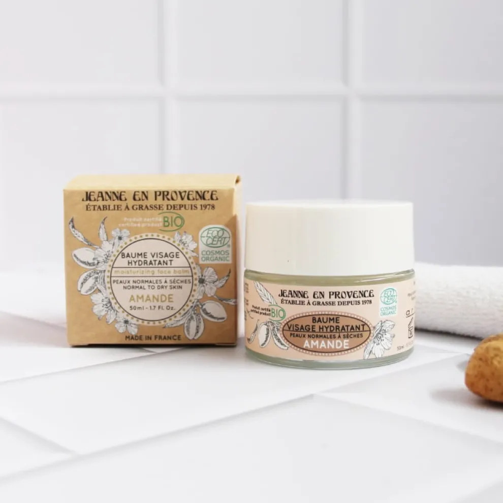 Speciaal ontwikkeld voor de normale tot droge huid. Jeanne en Provence’s Organic Certified Moisturizing Face Balm, samengesteld met vitaminerijke zoete amandelolie en aloë vera gel, hydrateert de huid op milde wijze en laat een delicate bloemige amandelgeur achter. Met liefde gemaakt in de Provence.