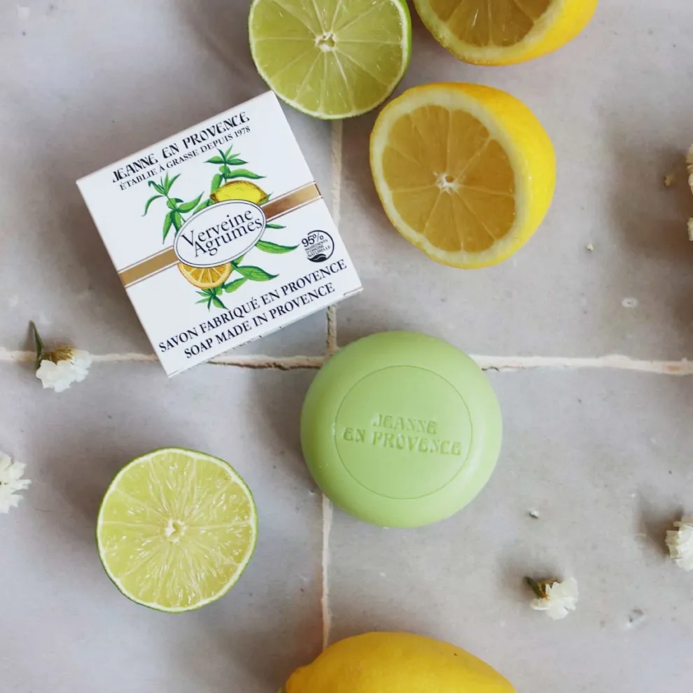 De Citrus Verbena Solid Soap van Jeanne en Provence is een echte Marseille zeep, gemaakt volgens de traditionele methode van de Meester Zeepmakers. Met exotische verbena essentiële olie en citroenextract geeft het een gevoel van zachtheid en welzijn. Geur ontwikkeld in Grasse. Zeep met liefde gemaakt in de Provence.