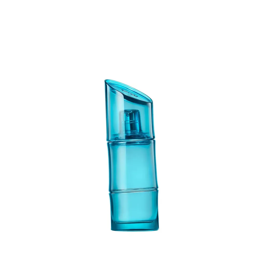 De doorschijnende watergroene flacon van KENZO HOMME Eau de Toilette Marine roept de kleur op van de zee die samensmelt met de horizon. De vorm, die de kracht en flexibiliteit van bamboe weerspiegelt, is verticaal vormgegeven. De afgeschuinde kap doet denken aan de snede van een katana, het zwaard van de samoerai.