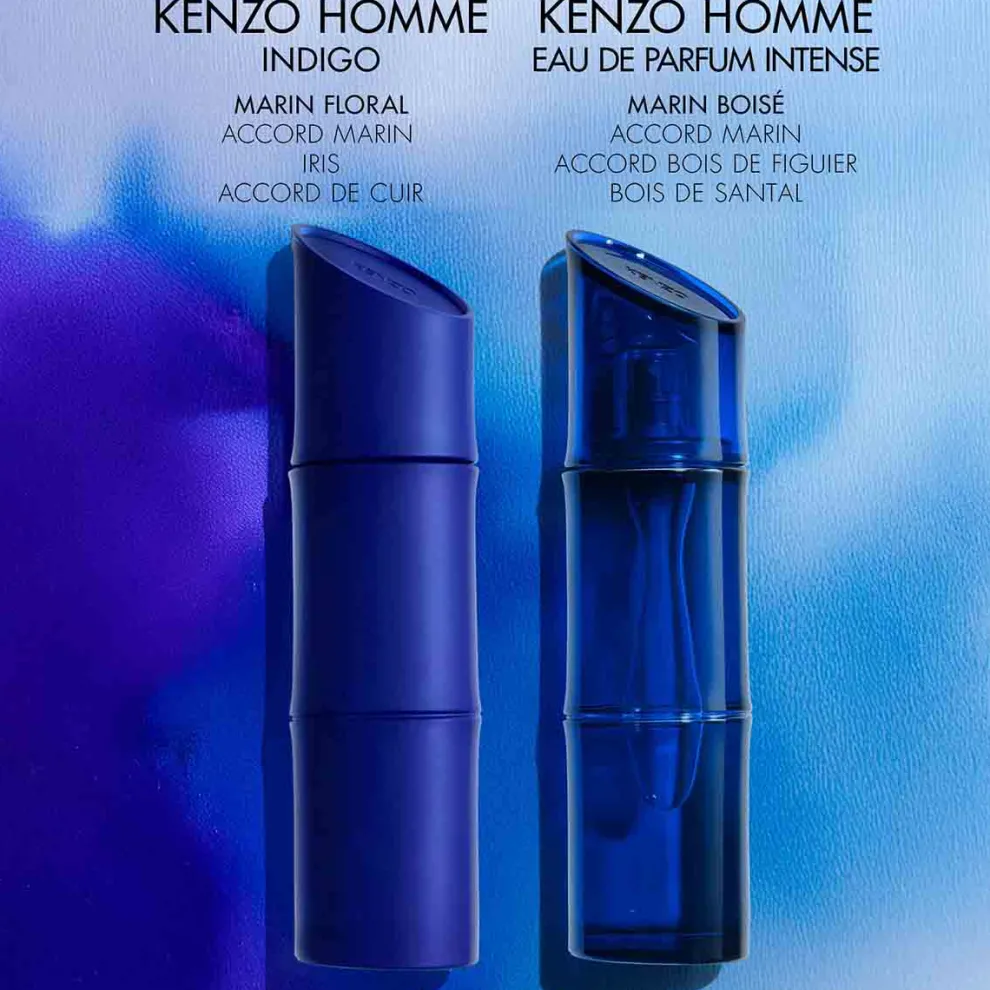 De Kenzo Homme Indigo flacon lijkt ondergedompeld in Indigo-inkt en onderscheidt zich door de moderniteit van zijn ondoorzichtige blauwe lak met mat structuureffect. De vorm doet denken aan de kracht en soepelheid van bamboe, terwijl de afgeschuinde dop eruitziet alsof hij is gesneden met een katana, het samoeraizwaard. Als onderdeel van de duurzame aanpak van het Huis is 100% van de gebruikte alcohol afkomstig van Franse velden die overgaan op regeneratieve landbouw, wat bodemverarming en verlies van biodiversiteit bestrijdt.