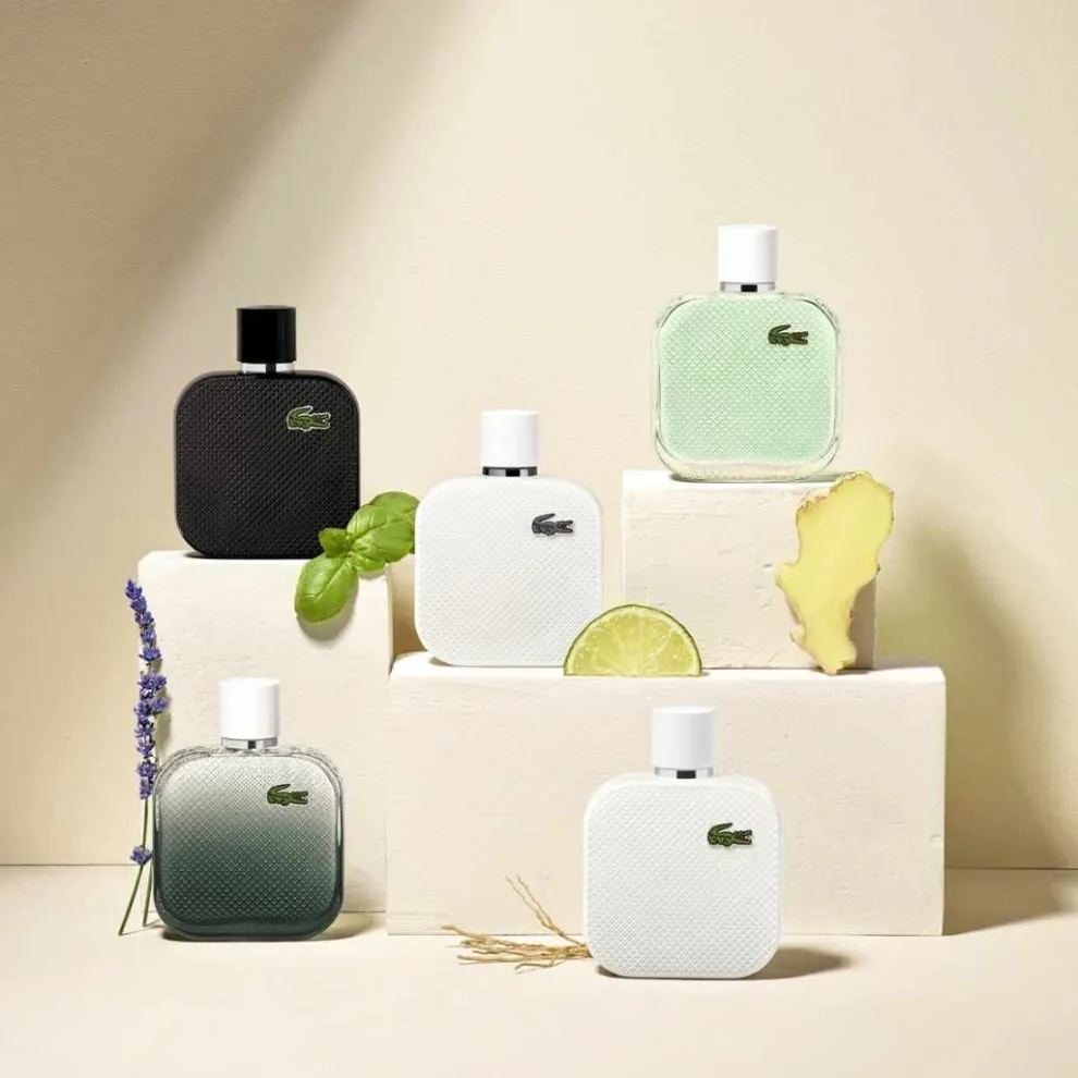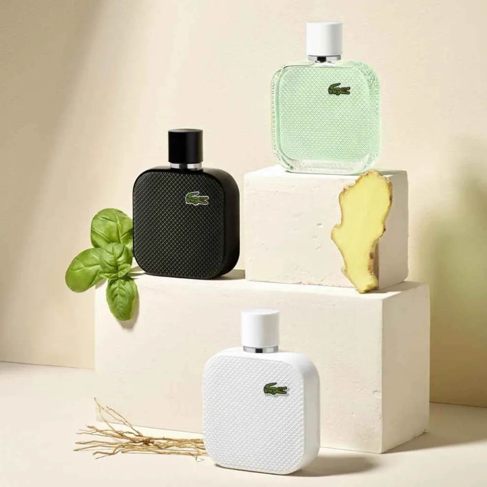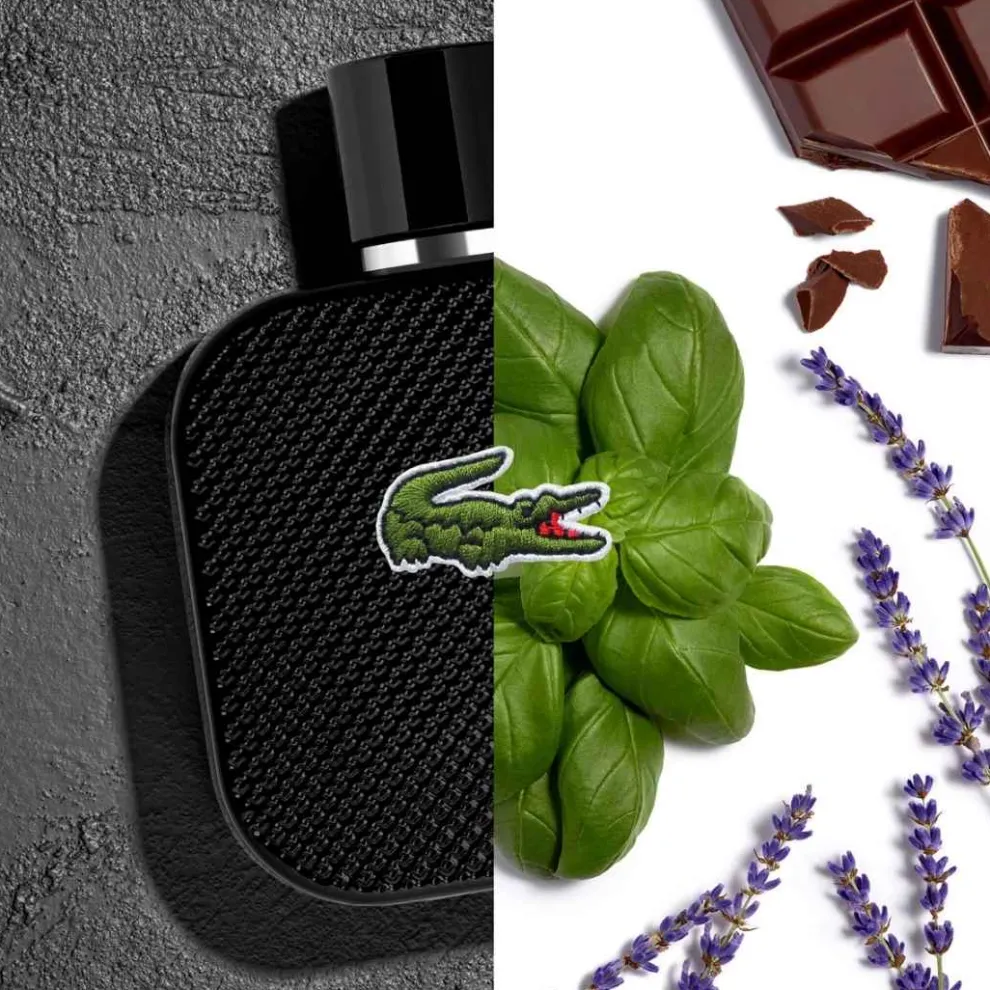 De Eau de Toilette L.12.12 Noir, geïnspireerd door het iconische Lacoste poloshirt, onthult een eigentijdse mannelijkheid door middel van een aromatische fougèregeur.