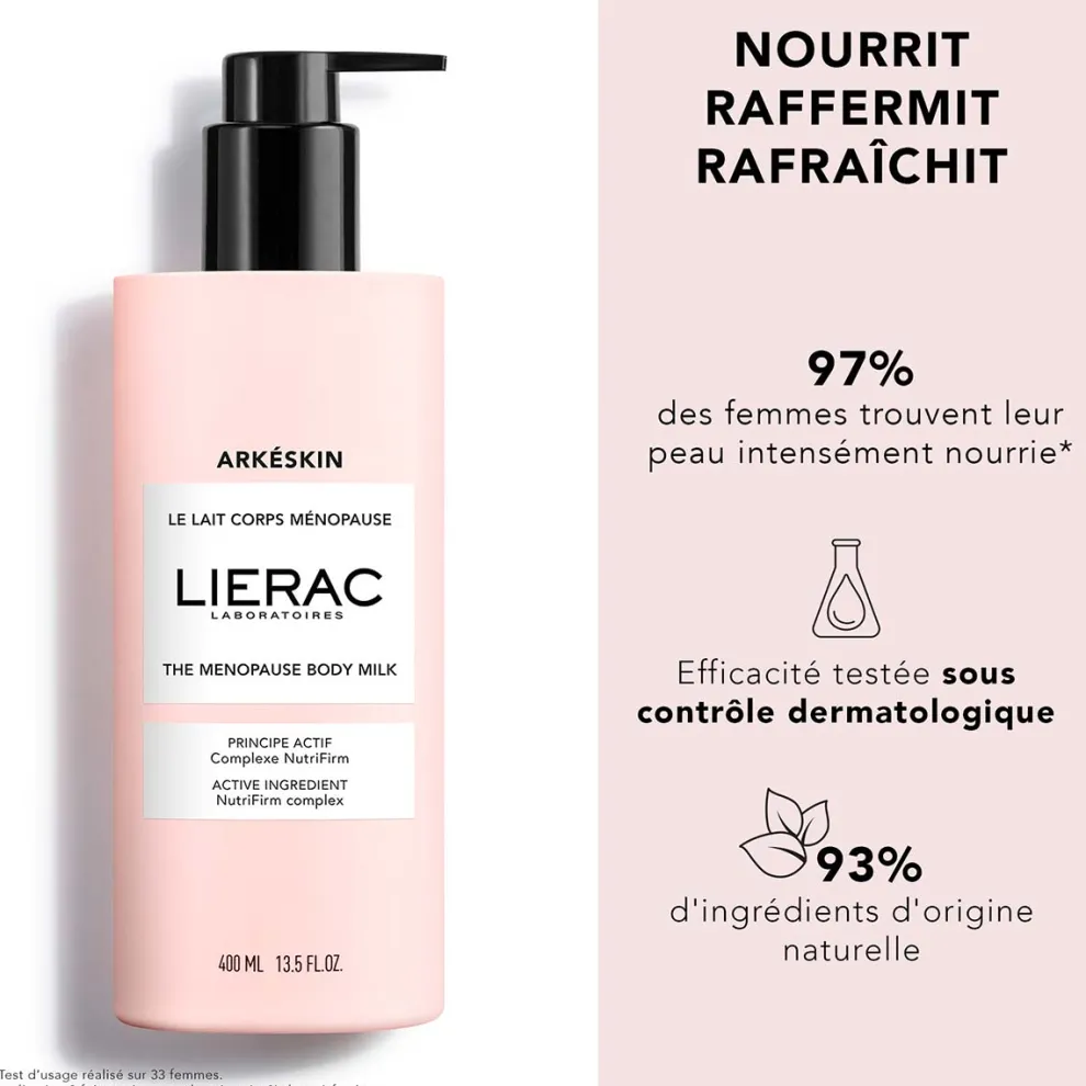 De Menopause Body Lotion is samengesteld uit 93% natuurlijke ingrediënten en corrigeert de zichtbare tekenen van de menopauze op de huid: droogheid, verlies van stevigheid en teint. De smeltende, voedende textuur is speciaal ontwikkeld voor vrouwen in de menopauze en geeft direct na het aanbrengen een aangenaam fris gevoel. De huid krijgt haar stevigheid en teint terug, is duurzaam gevoed en voelt comfortabeler aan. Getest onder gynaecologische en dermatologische controle.
