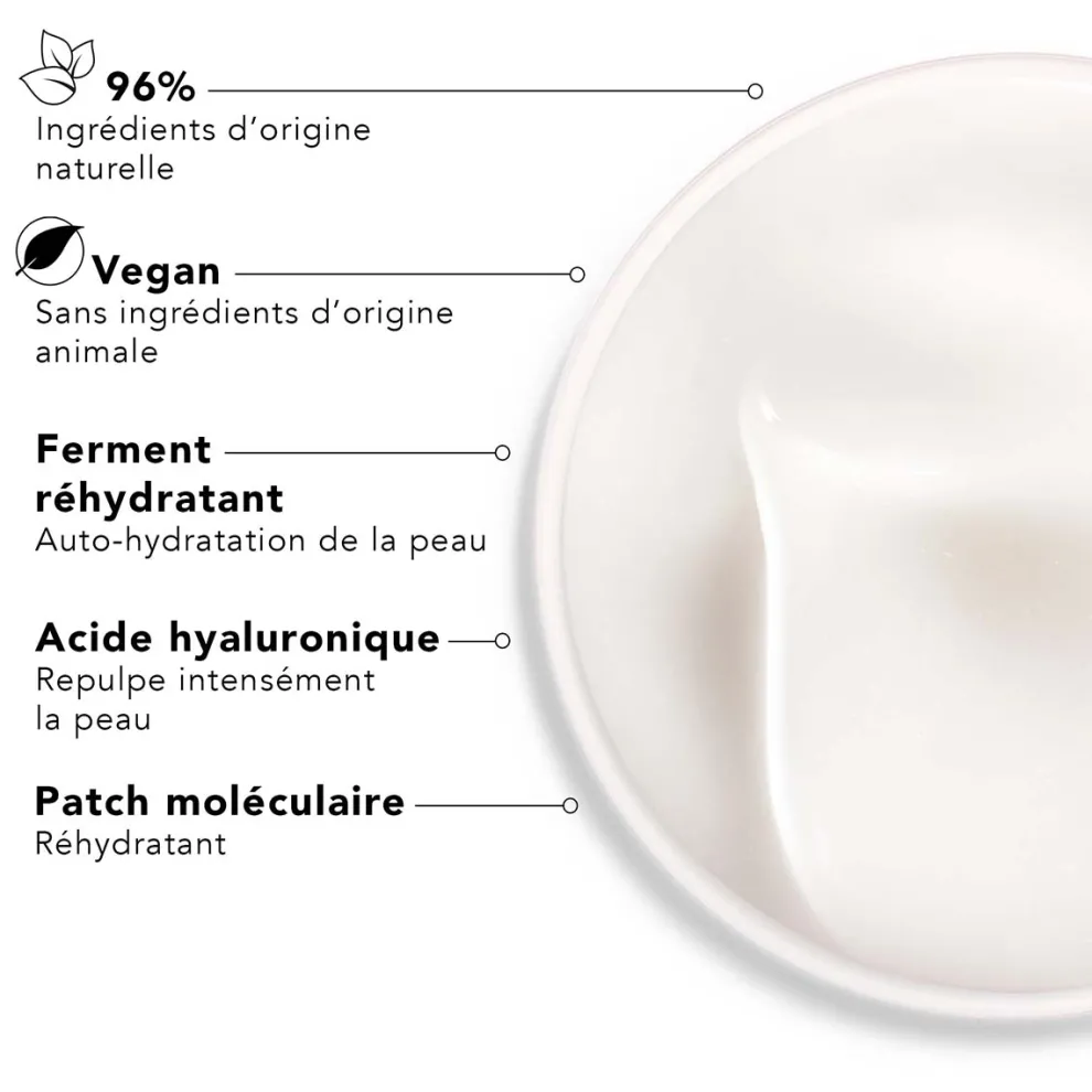 | Effect | Rehydrateert – maakt voller – verlicht Continu gehydrateerd, de huid is voller, soepel en stralend. Geformuleerd voor alle huidtypes, zelfs de gevoelige huid. Bewezen doeltreffendheid De doeltreffendheid is klinisch en instrumenteel gemeten, onder dermatologische controle. +33% diepe hydratatie (epidermis) *Instrumentele meting bij 27 personen. Twee keer per dag aangebracht gedurende 1 maand. … en gevoeld door vrouwen! **Onmiddellijk: 100% van de vrouwen vindt dat hun huid straalt Na 14 dagen: 88% van de vrouwen vindt dat hun huid voller is Na 1 maand: 96% van de vrouwen vindt dat hun huid intens gehydrateerd is **Gebruikstest uitgevoerd bij 27 personen. Twee keer per dag aangebracht gedurende 1 maand. % tevreden |