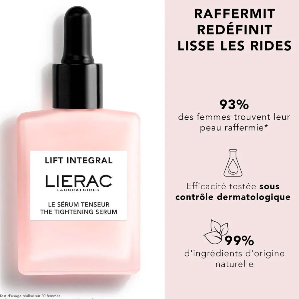 Serum Lift Integral versterkt de huidstructuur door in te werken op de essentiële elementen (collageen, elastine, hyaluronzuur) en op de glycoproteïnen die ze met elkaar verbinden. De huid wordt weer stevig, elastisch en veerkrachtig, voor een compleet liftend effect. De melkachtige textuur van het Verstevigende Serum omhult de huid voor een fluweelzachte finish. Geformuleerd voor alle huidtypes, zelfs de gevoelige*.