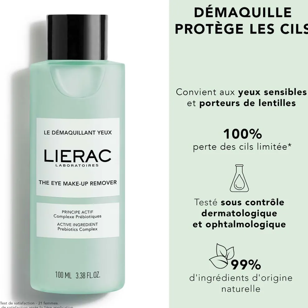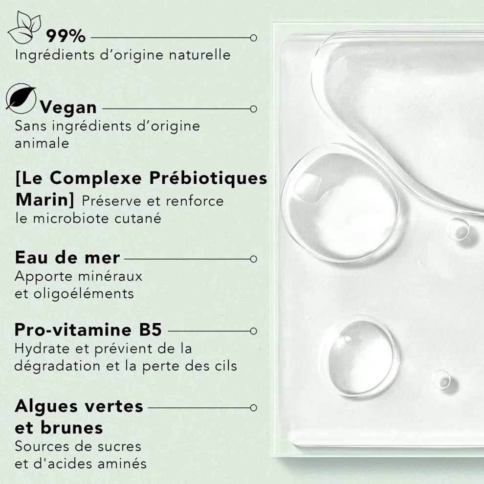 Le Démaquillant Yeux is gemaakt van 99% natuurlijke ingrediënten en verwijdert effectief hardnekkige make-up, zelfs waterproof, terwijl het de wimpers verzorgt. De kern van de formule wordt gevormd door het Marine Prebiotic Complex dat de microbiota van de huid in stand houdt en versterkt. Verrijkt met Pro-Vitamine B5 om de wimpers te hydrateren en beschadiging en verlies te voorkomen. De tweefasige textuur combineert de make-upverwijderende werking van olie met de frisheid van water, zonder een vettig laagje achter te laten. De oogcontour wordt perfect gereinigd, gehydrateerd en gekalmeerd. De wimpers worden beschermd. Geschikt voor gevoelige ogen en contactlensdragers. VEGAN* Door oogartsen getest. Gemaakt in Frankrijk. *Bevat geen ingrediënten van dierlijke oorsprong.