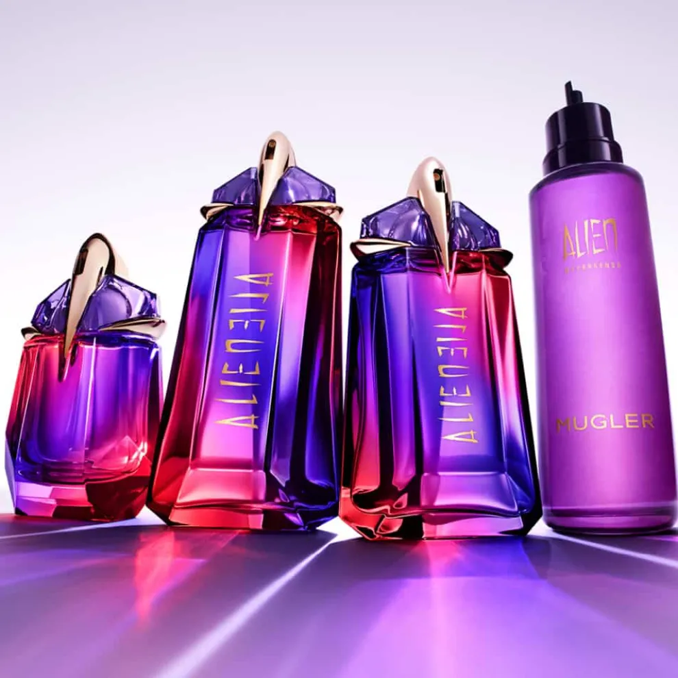 Alien Hypersense Eau de Parfum, le parfum qui éveille tous vos sens. Hypermoderne, hyperféminin et sensuellement floral. Alien Hypersense exprime les pouvoirs les plus instinctifs de la muse Alien. La quintessence de la fleur est capturée dans un flacon talisman technicolor. La femme Alien Hypersense ressent tout de manière hyperbolique. Connectée à elle-même, elle fait de son audace son pouvoir ultime. Magnétique et sensuelle, elle se métamorphose en découplant ses cinq sens. La vue, l’ouïe, le goût, le toucher, l’odorat… L’Eau de Parfum Alien Hypersense composée de trois révélations. La révélation de l’éveil : Si vive qu’on pourrait la goûter, la mandarine verte éveille tous nos sens. Elle s’accompagne d’un accord poire juteux et cristallin. La révélation fleurissante : Un accord magnétique et hyper féminin, composé d’une floraison fraîche et pétalé de Jasmin Sambac, qui amplifie le pouvoir solaire de la fleur. Ce jasmin Sambac est issu d’une récolte durable dans les champs, dont Mugler est propriétaire en Inde. Sa fragrance sensuelle et généreuse, moins fruitée et plus florale que le jasmin classique, révèle puissance et opulence. La révélation électrisante : Sentez la force du cashmeran, irradiant d’hyper-sensualité. Doux comme le musc, soyeux comme le bois flotté, avec une touche salée et sexy d’ambre gris sur la peau chauffée par le soleil… Le bois ambré emblématique d’Alien, aux facettes si riches qu’il est presque un parfum à lui seul, déclenche une révolution sensorielle. Au-delà du parfum : une invitation à ressentir l’extraordinaire et libérer l’Alien qui sommeille en vous. Conçu par Mugler avec Dominique Ropion, l’ultime Maître Parfumeur qui a composé l’Eau de Parfum originale en 2005 : “J’ai conçu un Alien ultra-moderne, atteignant la quintessence de la floralité”. Pour vous ou pour offrir, Alien Hypersense Eau de Parfum est disponible dans une gamme entièrement rechargeable en format 30ml, 60ml et 90ml. Rechargez votre flacon depuis chez vous avec le flacon recharge 100ml. Redonnez-vie éternellement à votre flacon !