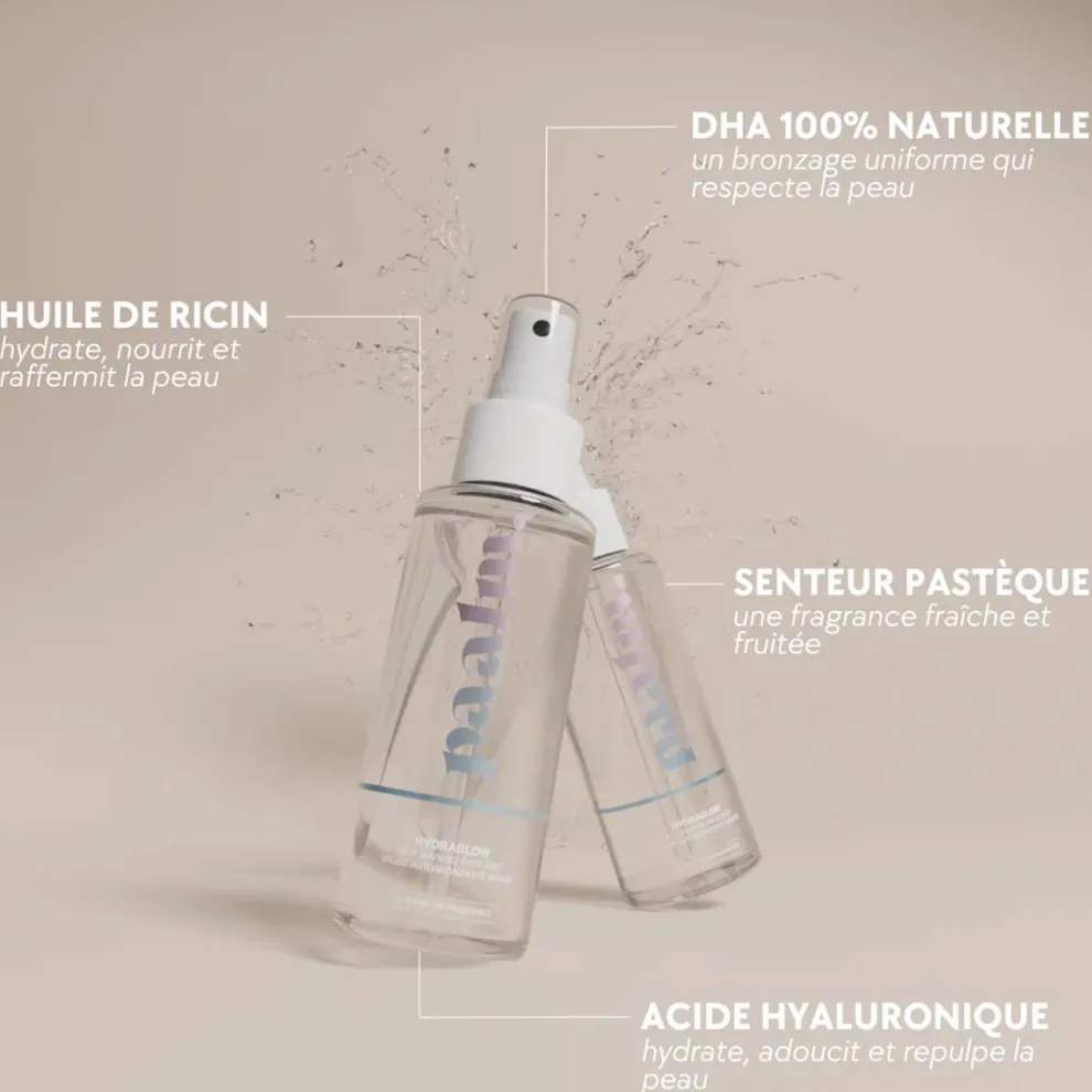 Ontdek HydraGlow, de zelfbruinende mist van PAALM Cosmetics®, een lichte formule verrijkt met hyaluronzuur en ricinusolie voor een stralende, gehydrateerde, natuurlijk gebruinde teint. Veganistisch, cruelty-free, geschikt voor alle huidtypes. https://paalm.co/products/hydraglow