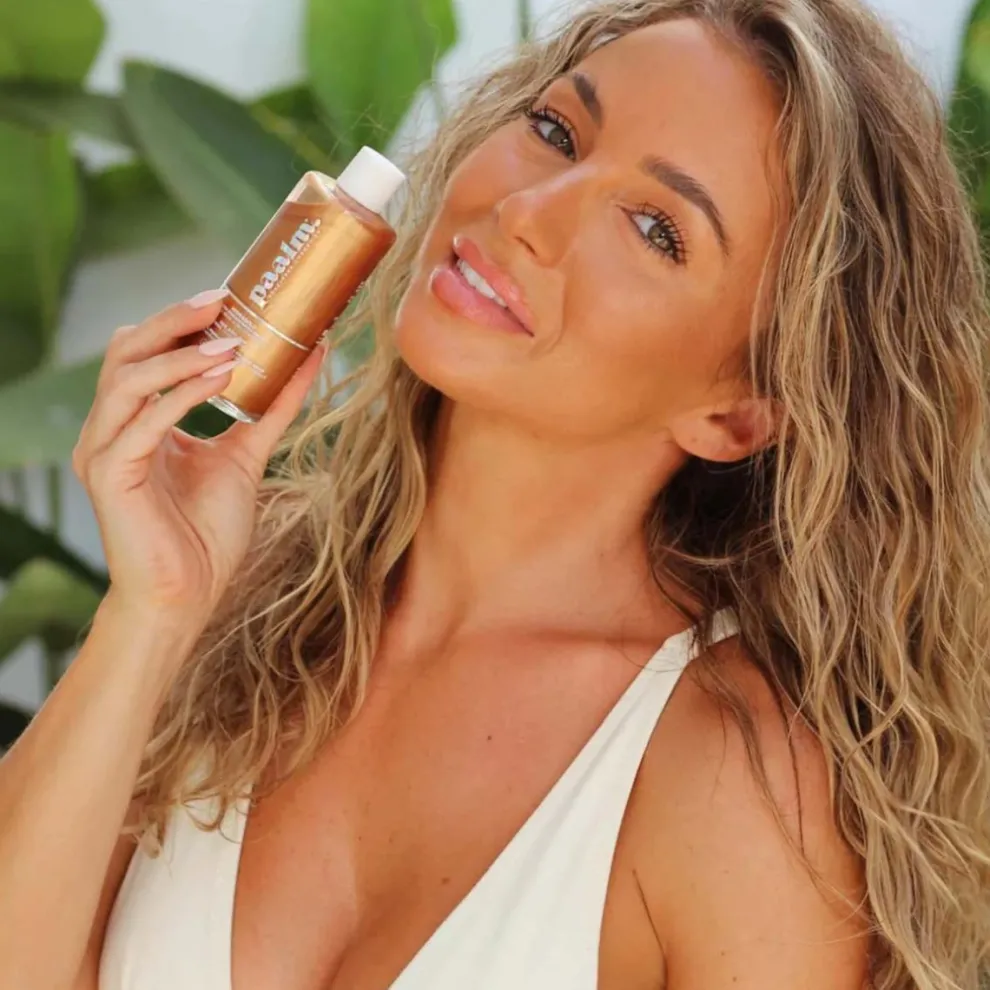| Ingrediënten | Aqua, dihydroxyaceton, glycerine, propaandiol, polysorbaat 20, cocamidopropyl betaïne, PEG-40 gehydrogeneerde ricinusolie, parfum, natriumcitraat, ethylhexylglycerine, citroenzuur, natriumhyaluronaat, fenoxyethanol. |