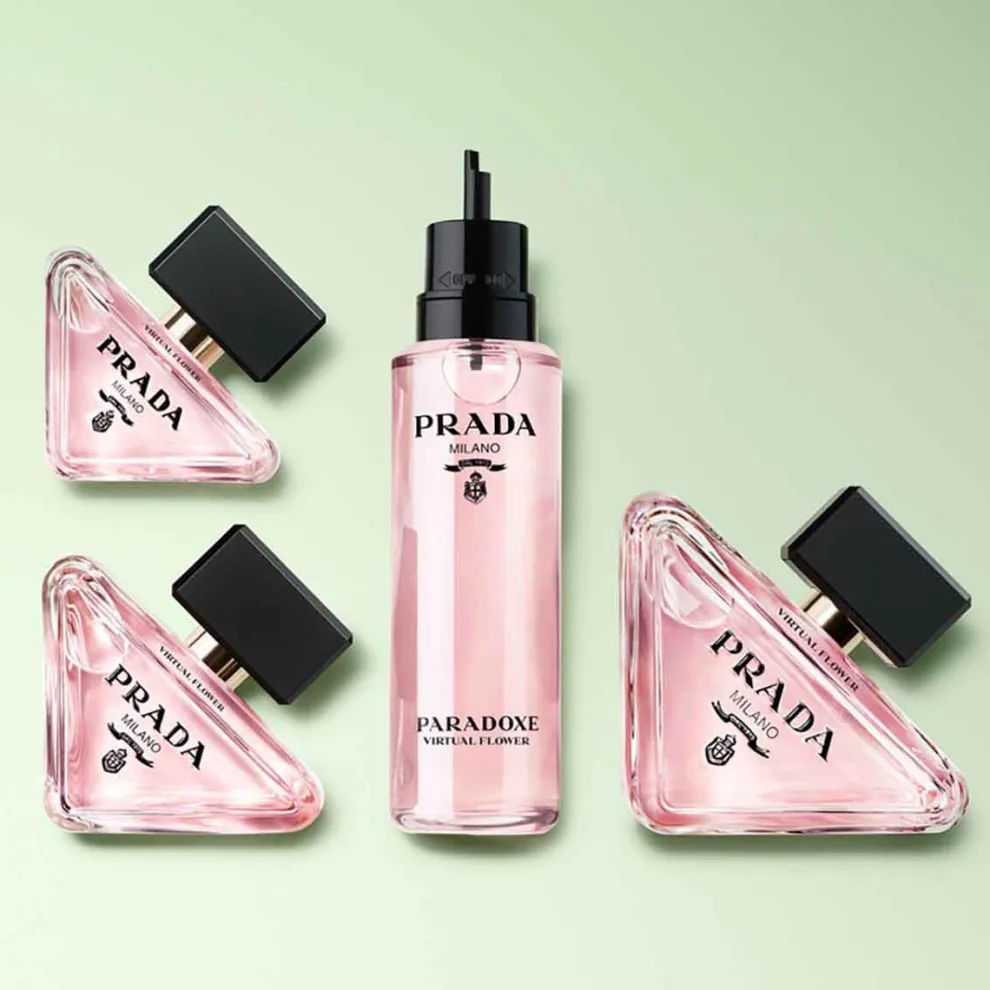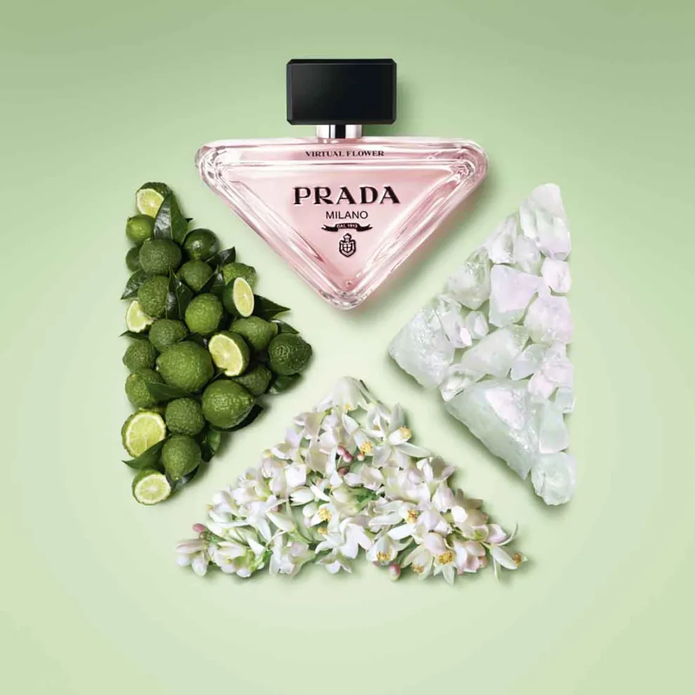 Prada Paradoxe Virtual Flower, het nieuwe vrouwelijke Eau de Parfum van Prada, verlegt de grenzen van de zintuiglijkheid en daagt onze perceptie van de werkelijkheid uit met zijn frisse, bloemige signatuur, aangevuld met kunstmatige intelligentie, die een van de meest symbolische codes van vrouwelijkheid en parfum heroverweegt: bloemigheid. De avant-gardistische muskusachtige florale signatuur van Paradoxe Virtual Flower onthult de frisse, pittige noten van de Italiaanse Bergamot Green, het stralende bloemige hart van het akkoord Jasmine AI & Neroli en de troostende tweede-huid sensatie van Muskus en Ambrette. CREATIVITEIT VERBETERD DOOR ARTIFICIËLE INTELLIGENTIE Onze meesterparfumeurs Nadège Le Garlantezec, Shyamala Maisondieu en Antoine Maisondieu kozen een van de meest geraffineerde bloemen in de parfumerie: jasmijn, en wilden die uitdrukken als nooit tevoren. Daarom maakten ze gebruik van de kracht van kunstmatige intelligentie om een uniek Prada akkoord te creëren dat de geur van de bloem in de natuur vastlegt. EEN ICONISCHE & MEER VERANTWOORDELIJKE FLESSEN Geïnspireerd door het iconische driehoekige logo van Prada, is de minimale en delicate Paradoxe Virtual Flower flacon ontwrichtend ontworpen om op zijn kant te zitten. De verpakking, dozen en flessen, zijn recyclebaar. De flessen zijn ontworpen om hun gewicht en het gebruik van glas te beperken. De papieren verpakking is FSC MIX gecertificeerd. Alle formaten zijn hervulbaar. Een flesje Paradoxe Virtual Flower van 50 ml en een navulling van 100 ml verminderen het materiaalgebruik met ongeveer 38% in vergelijking met drie flesjes van 50 ml, d.w.z. -29% glas, -67% metaal, -44% plastic en -41% karton.