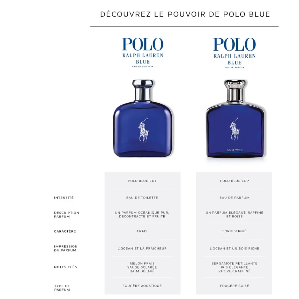 Polo Blue eau de parfum is een verfijnde houtachtige fougère die de perfecte balans vindt tussen aromatische, aquatische en houtachtige noten. De verleidelijke intensiteit van vetiver en houtachtige amber vormt een elegant contrast met de frisse frisheid van bergamot. Het veelzijdige akkoord van blauwe iris voegt een houtachtige, droge toets toe, versterkt door de natuurlijke aroma’s van verbena en scharlei.