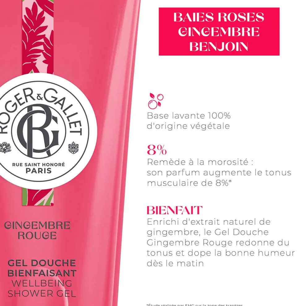 | Effect | Red Ginger Shower Gel, verrijkt met natuurlijk gemberextract, geeft je energie en humeur ’s ochtends een boost. De geur verhoogt de spierspanning met 8%* *Onderzoek uitgevoerd door EMG op de nek. |