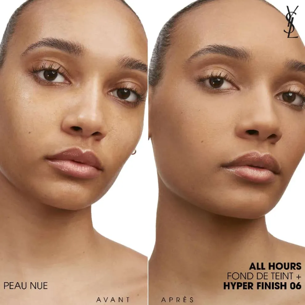 Dankzij hyaluronzuur en niacinamide camoufleert All Hours Hyper Finish onvolkomenheden terwijl het op natuurlijke wijze matteert en een hoge dekking geeft. In combinatie met een huidverzorgingsbasis die 90% ingrediënten van natuurlijke oorsprong bevat, biedt de formule comfort en hydratatie voor een langdurig, uitdrogend effect.