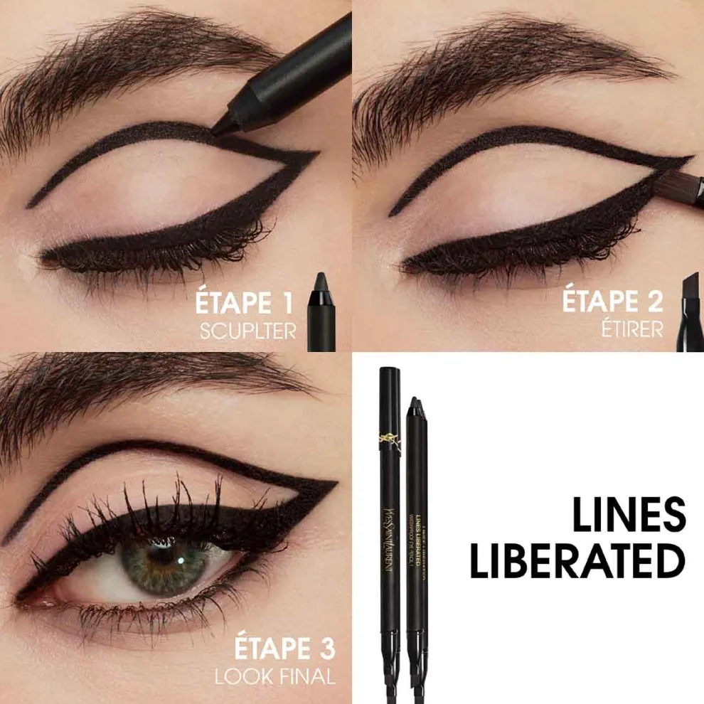 Ontdek Lines Liberated, het nieuwe sterk gekleurde, waterproof oogpotlood van Yves Saint Laurent Beauté. Waterbestendig om 24 uur lang te dragen en verkrijgbaar in 12 hypergekleurde, gepigmenteerde tinten met een matte, satijnen of chromen afwerking. Het 3-in-1 kwastje met twee uiteinden maakt het gemakkelijk om te modelleren, te mengen en uit te rekken. Je ogen worden geaccentueerd met ultra gepigmenteerde kleuren voor een make-up die je kunt aanpassen aan je stemming. De romige textuur, verrijkt met cactusvijgolie uit de tuinen van de Ourika gemeenschap, is gemakkelijk aan te brengen en blijft de hele dag comfortabel.