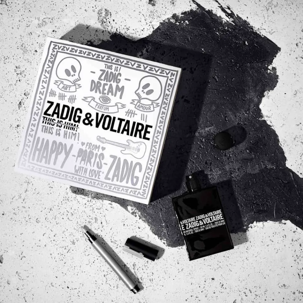 Ontdek de This is Him! Eau de Toilette met een nieuw ontwerp van kunstenaar Léo Dorfner. Deze geurset voor mannen bevat – This is Him! Eau de Toilette 50ml – This is Him! Body Wash 50ml This is Him! Zadig & Voltaire’s iconische Eau de Toilette voor mannen. Dit is Hem! Een oriëntaalse geur, houtachtig en verslavend. Een verslavende, houtachtige oriëntaalse geur voor mannen met een onafhankelijke, vrije geest die levendige wierooknoten mengt met grapefruit, alles opgepept met een vleugje zwarte peper. Sterk en assertief, de mannelijke geest weerspiegelt de sensuele, verslavende noten van het vanillehart, dat overgaat in sandelhout.