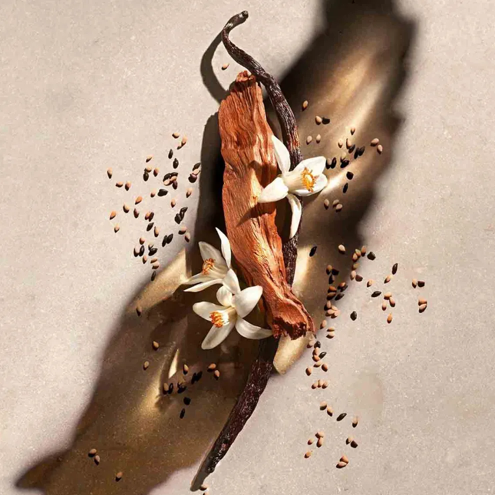 Noten van zwarte en witte sesam omhullen je huid vanaf de eerste spray. In de middennoten straalt oranjebloesem een stralende vrouwelijkheid uit. In de basis mengen sensuele noten van geroosterde vanille zich met romig sandelhout voor een onweerstaanbaar geurspoor.
