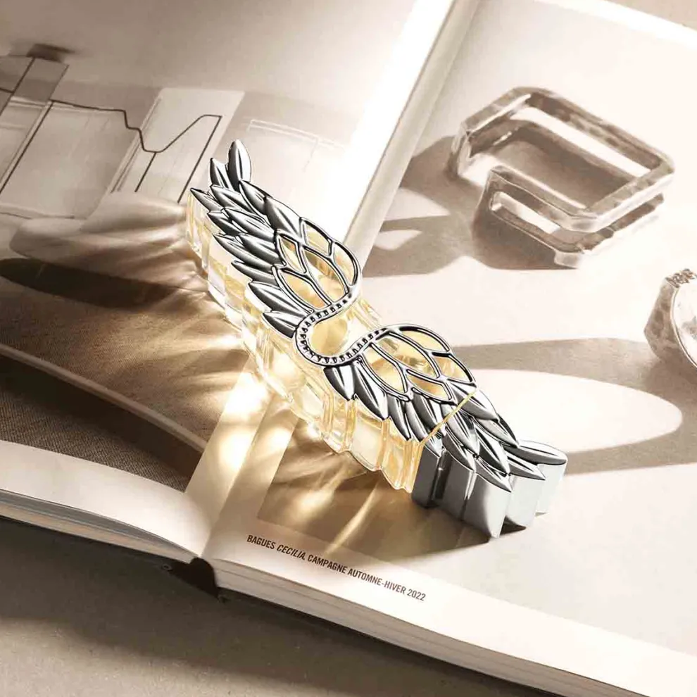 Geïnspireerd door het emblematische ZADIG&VOLTAIRE logo, symboliseert de vleugelvormige fles vrijheid. Innovatief en gedurfd, tart het alle normen van de traditionele parfumerie. De metallic afwerking creëert een juweelachtig effect, zowel een modeaccessoire als een talisman van vrijheid. De flacon kan worden losgeschroefd om de geur bij te vullen.